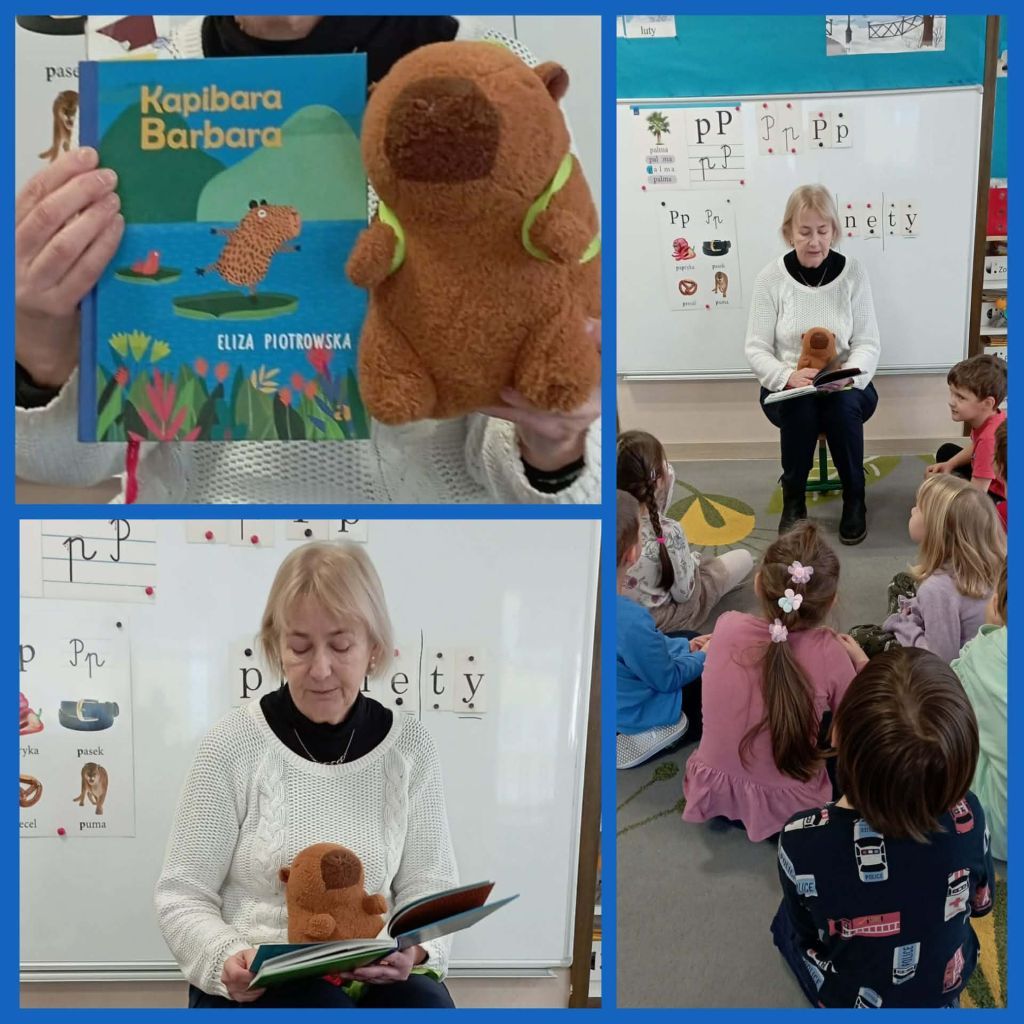 Pani Gosia przeczytała dzieciom książeczkę E. Piotrowskiej pt. "Kapibara Barbara".