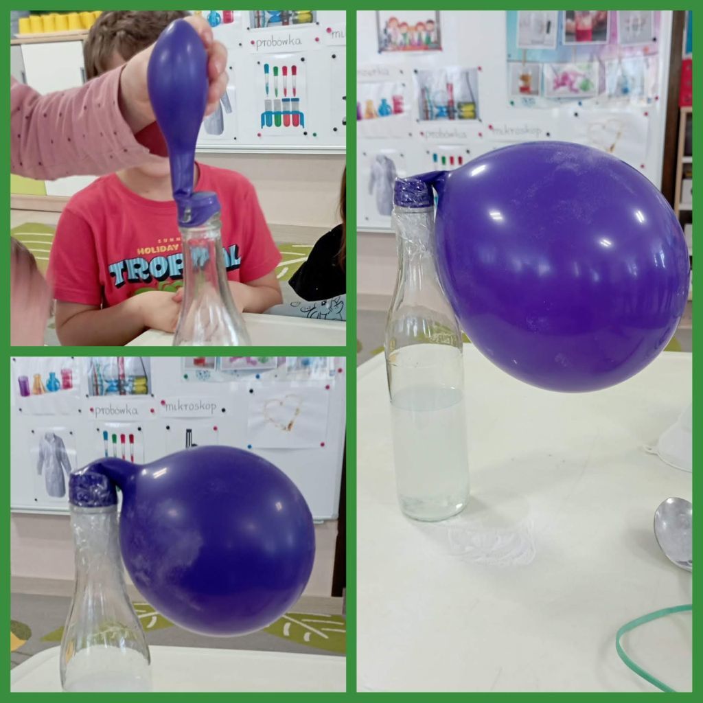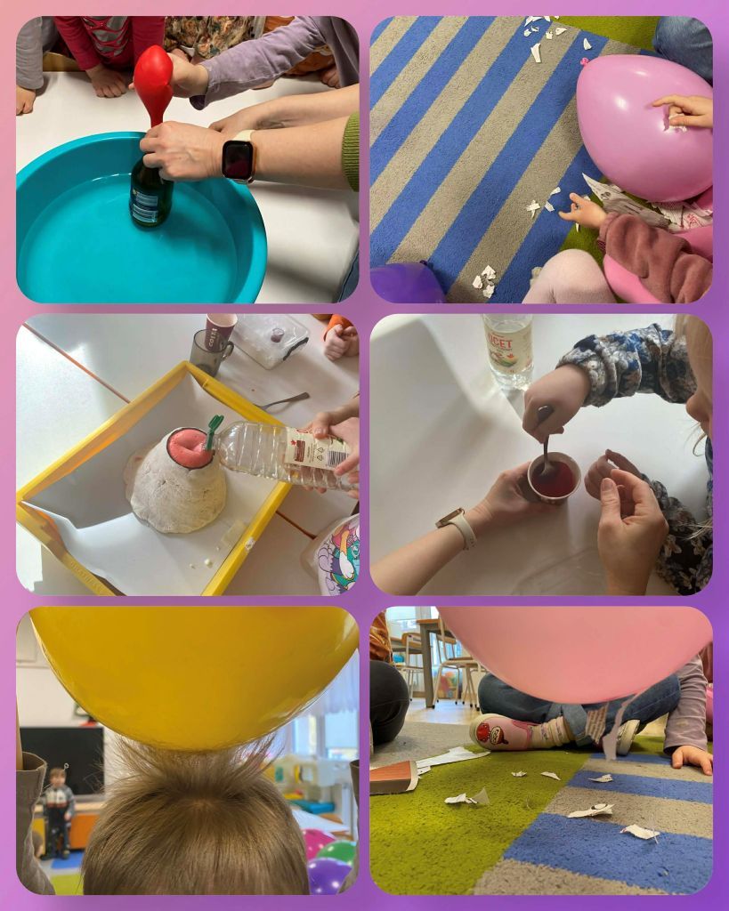 Dzisiaj ciąg dalszy eksperymentowania u Jeżyków: "Jak nadmuchać balon" i "Wybuch wulkanu".