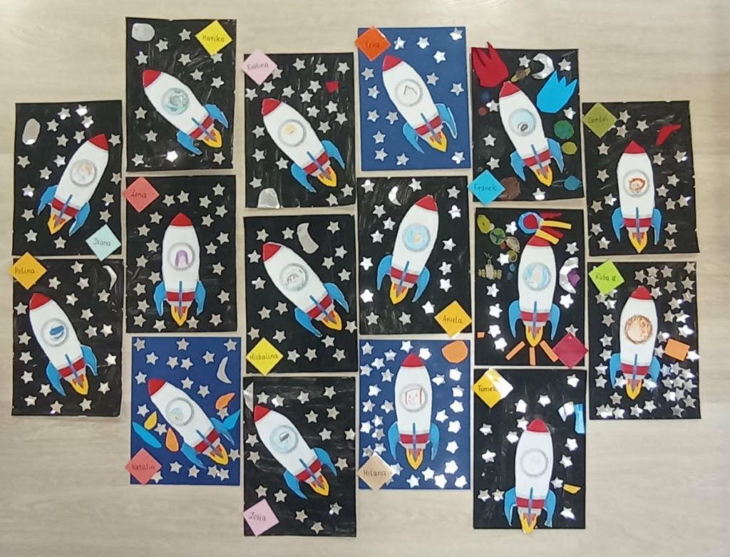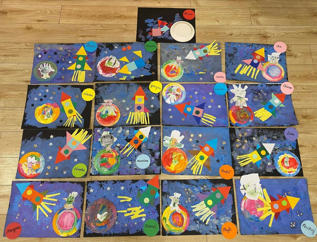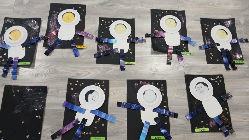 Jeżyki utrwaliły wiadomości o kosmosie. Wykonały pracę techniką mieszaną.