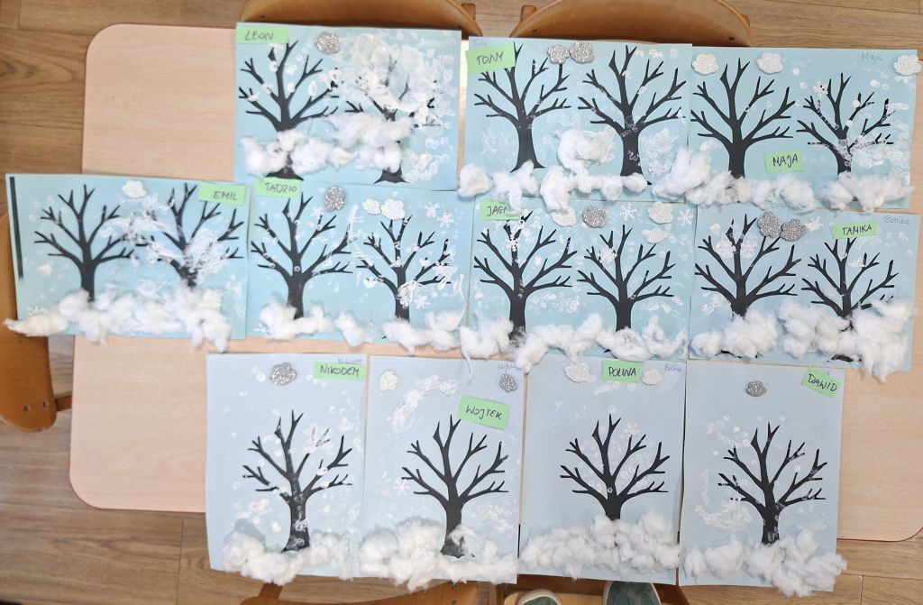 malowały patyczkiem higienicznym padający śnieg i przeklejały chmurki z pianki.